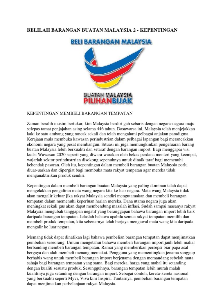 Contoh Esei Tugasan 2 Belilah Barangan Buatan Malaysia Pdf